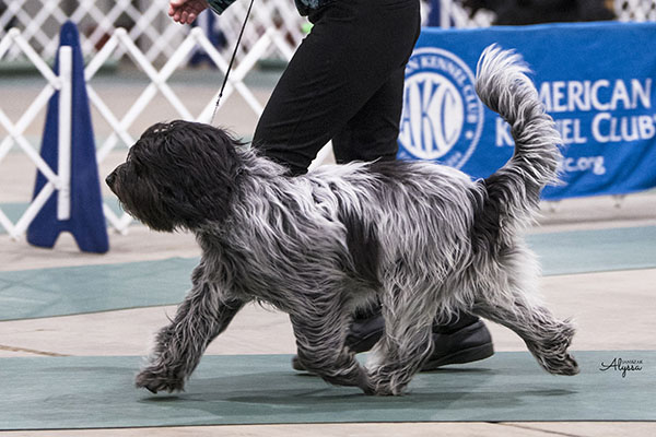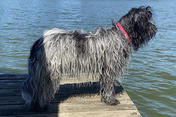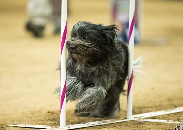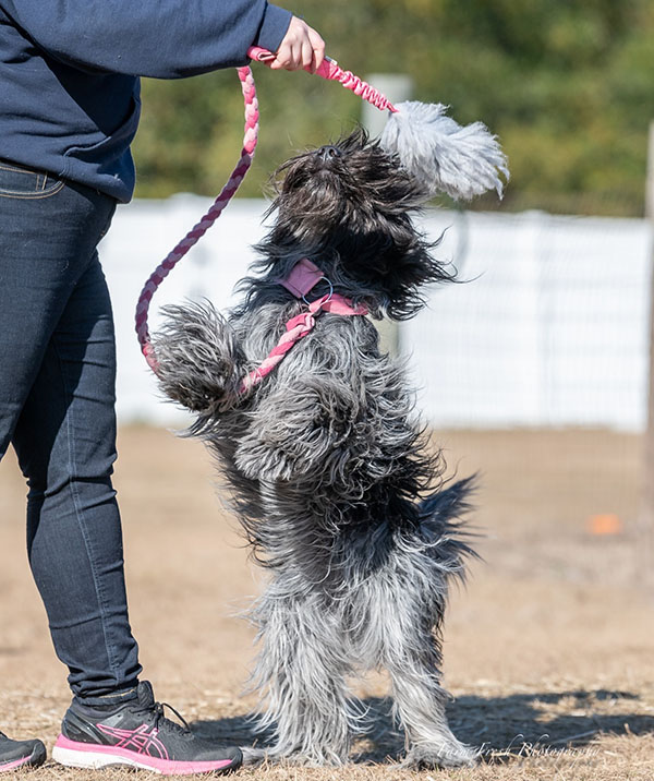 Zing is a female Schapendoes, imported from Canada as a puppy in 2016. She enjoys AKC and USDAA agility, competing at the masters level. She is an AKC Master Agility Champion5/MACH5. Zing was the #1 AKC Schapendoes invited to the 2023 & 2024 Agility Invitational. She loves to swim and carry things in her mouth. She was confident during herding instinct evaluations with two different herding instructors. She is playful, friendly, and affectionate. Her play style with other dogs is submissive, often lying down and rolling on her back during play. She loves to hunt bugs. She is a great traveler and stable in any environment.